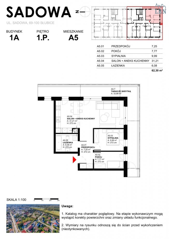 Oferujemy Państwu mieszkanie 3 pokojowe A5 na nowo budowanym osiedlu, o powierzchni 62,3 mkw, w skład którego wchodzą: