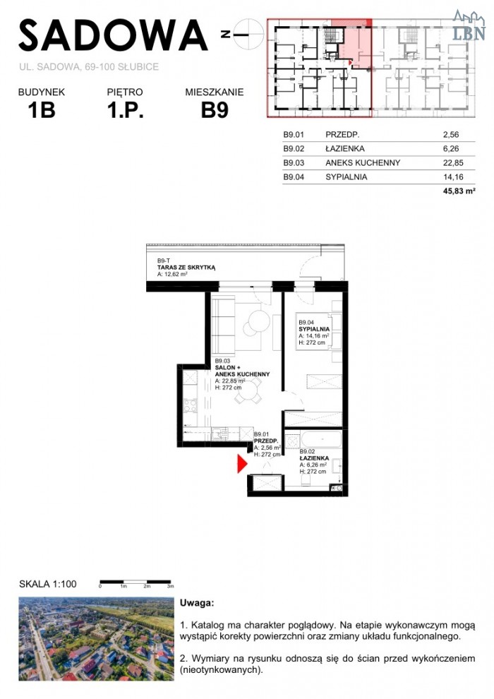 Mieszkanie B9 - powierzchnia 45,83 mkw