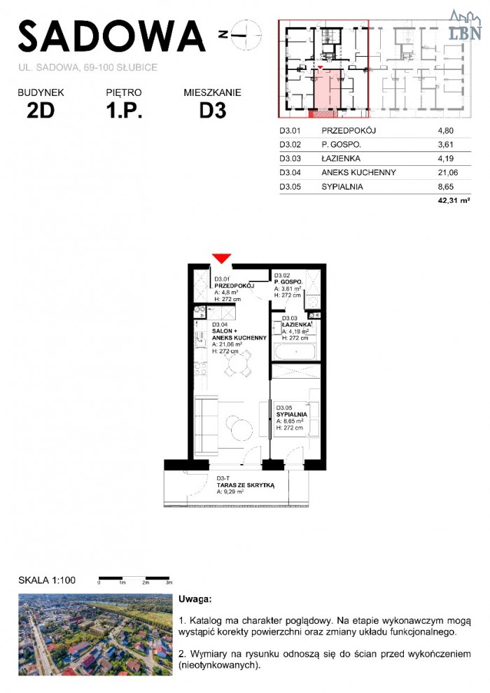 Mieszkanie D3 - powierzchnia 42,31 mkw