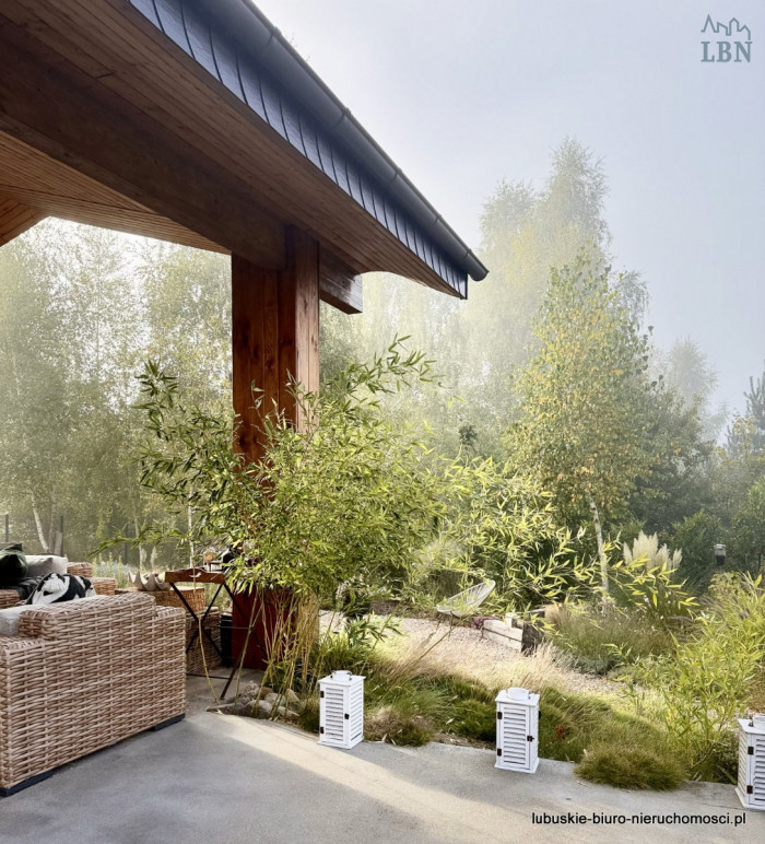 Budynek usytuowany na w pięknie zagospodarowanej działce o powierzchni 1270 mkw., położonej w spokojnej okolicy, w sąsiedztwie lasów.