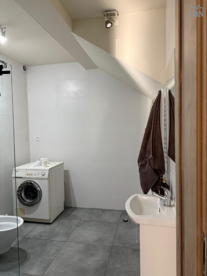 Charakterystyczny układ domu, na który składają się dwa osobne lokale, jeden o powierzchni ponad 60 mkw, drugi dwupoziomowy 120 mkw, sprawia że jest to idealne rozwiązanie dla rodziny wielopokoleniowej.