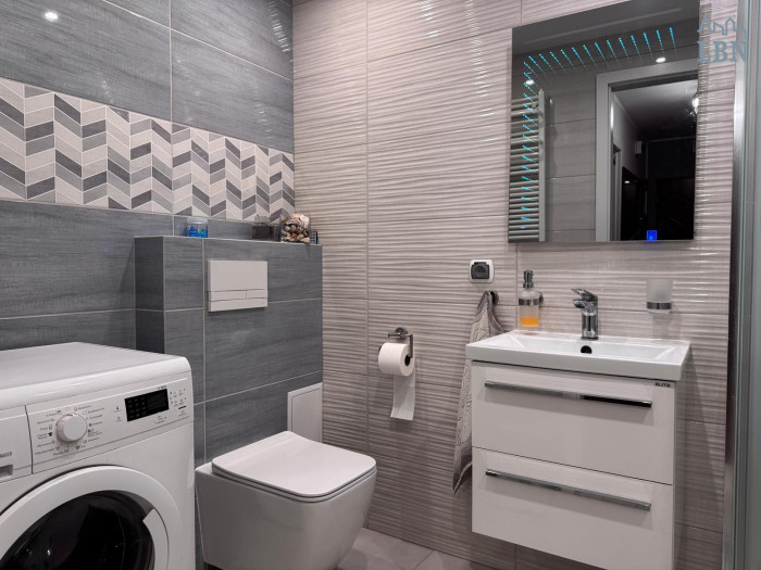 Lokal mieszkalny składa się z salonu, sypialni, kuchni, łazienki oraz przedpokoju.