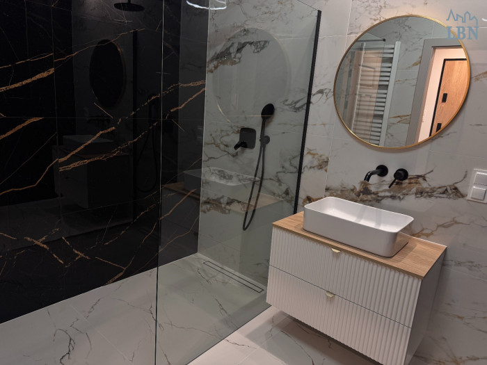 Mieszkanie wykończono z zastosowaniem wysokiej jakości materiałów, jest w wyposażone w kompletny sprzęt AGD, klimatyzację i umeblowane. W całym mieszkaniu ogrzewanie podłogowe, ciepło systemowe z miasta.