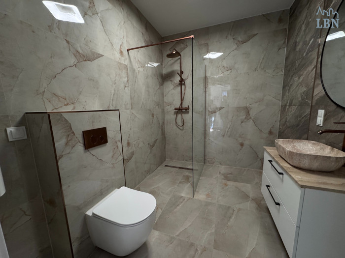 Mieszkanie wykończono z zastosowaniem wysokiej jakości materiałów, jest w wyposażone w kompletny sprzęt AGD oraz meble kuchenne. W całym mieszkaniu ogrzewanie podłogowe, ciepło systemowe z miasta.
