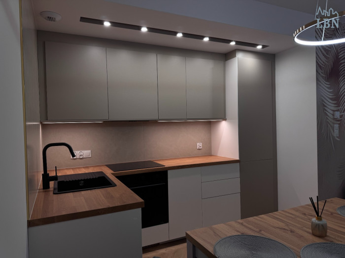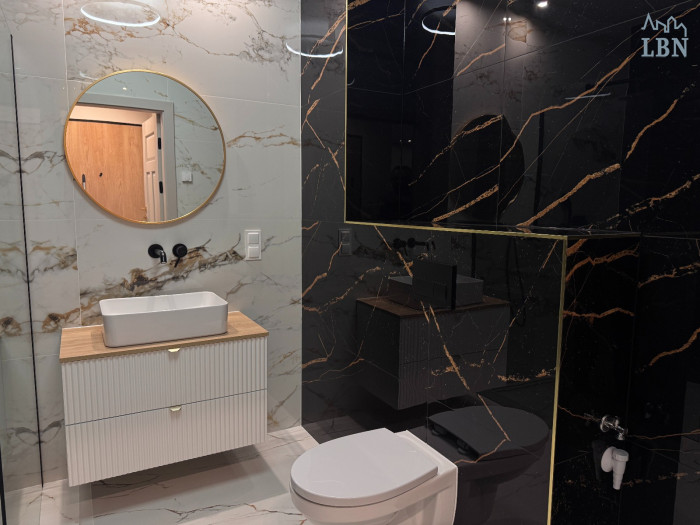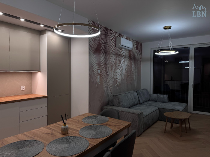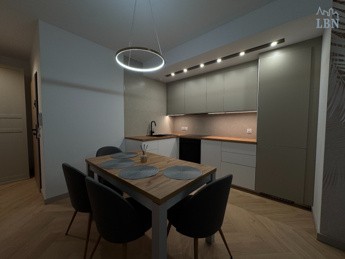 Mieszkanie wykończono z zastosowaniem wysokiej jakości materiałów, jest w wyposażone w kompletny sprzęt AGD, klimatyzację i umeblowane. W całym mieszkaniu ogrzewanie podłogowe, ciepło systemowe z miasta.